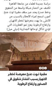 “إن المقابر الملكية في وادي الملوك تتطلب تدخلاً عاجلاً ودراسات علمية دقيقة لتحليل المخاطر وسبل الحد منها.”