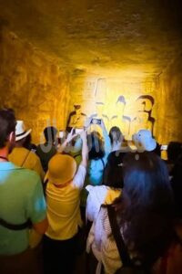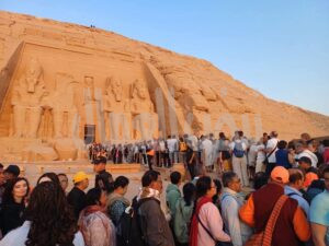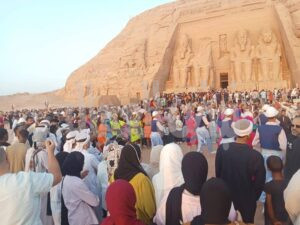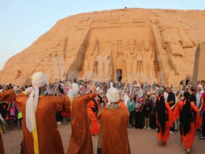 tourists and visitors… celebrate the sun’s alignment at Abu Simbel Temple, witnesses the phenomenon of the sun’s rays falling directly on the face of King Ramses II