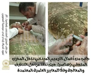 ـ تأتي هذه الجهود استكمالًا لخطة الصيانة الدورية الوقائية التي تُنفذ للحفاظ على مقتنيات المخزن المتحفي بإهناسيا، وفقًا لأعلى المعايير العلمية والفنية في مجال الترميم.