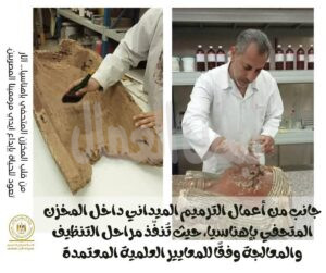من قلب المخزن المتحفي بإهناسيا… أيادي الترميم تُعيد للحجر والخشب تفاصيلهما وللتاريخ حياته.