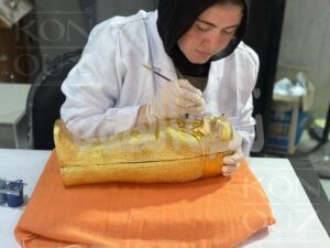 وأوضح اللواء هشام شعراوي رئيس مجلس إدارة شركة كنوز مصر للنماذج الأثرية، أن تصميم الدعوة مر بعدة مراحل دقيقة تعكس حساسية العمل الفني المُستمد من إرث مصر الحضاري، بدأت العملية من قسم النحت، حيث تولّى الفنانون تجسيد الزخارف والرموز والكتابات الهيروغليفية بدقة التماثل الأصلية، ثم انتقلت إلى مراحل الاستنساخ فـالتذهيب فـالتلوين، قبل أن يُغلّف التابوت من الداخل بقماش المخمل الفاخر، لتظهر في صورتها النهائية التي تليق بعظمة الاحتفالية ومكانة المتحف.