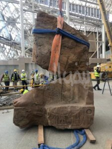 الرحلة بدأت من “صان الحجر”.. نقل.. ثم ترميم.. وإقامة.. وتثبيت للمسلة المعلقة داخل المتحف بنجاح منقطع النظير بأيادي وإشراف من الدكتور محمد فتحي والمرمم الشاطر محمد جاد و والمرمم محمود عبد الناصر و الريس محمود فاروق ورجالته