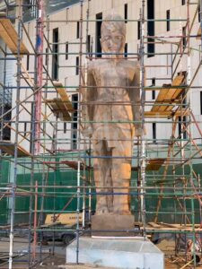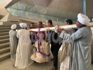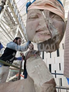تم نقل التمثال العملاق والي كان مكسر الي اربع قطع من صان الحجر إلى المتحف، حيث تمت دراسته بدقة بقيادة الدكتور محمد جاد من فريقنا، وانتهى الأمر بإقامته وتثبيته في مكانه ليظهر بمهابة الملك العظيم. والصور بتوثق كل مرحلة من الرحلة.