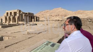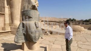 Visite du Ramesseum avec le docteur Christian Leblanc, directeur de recherche au CNRS et responsable de la mission archéologique de Thèbes-Ouest. Le temple de Ramsès II ! Il s’agit d’un chantier archéologique majeur, symbole de plus de trois décennies de partenariat réussi entre la France et l’Égypte pour l’étude et la préservation de l’héritage de Ramsès II.