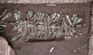 فخلال أعمال التنظيف الأثري لأرضية الغرفة الشمالية بمقبرة الملك أوسركون الثاني من الأسرة 22، اكتشفت البعثة مجموعة كبيرة من 225 تمثالاً جنائزياً (أوشابتي) للملك شوشنق الثالث، أحد أبرز ملوك الأسرة 22 وصاحب إسهامات معمارية مميزة بمدينة تانيس. وقد وُجدت هذه التماثيل في وضعها الأصلي، داخل طبقات متراكمة من الطمي، بالقرب من تابوت جرانيتي غير منقوش كان قد عُثر عليه سابقاً دون تحديد هوية صاحبه.