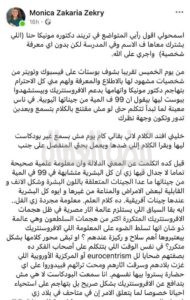 صرحت الكاتبة شرين هلال بصفحتها بالسوشيال ميديا حرب تكسير العظام التي بدأتها على الدكتورة مونيكا حنا قائلة :