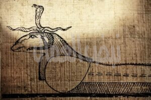 Inside the lake, images of mythological figures including the crocodile god Sobek-Re, Osiris, and the solar child allude to stories of the creation of the world as well as the nightly regeneration of the sun god.