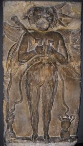 • المتحف اليوناني الروماني بالإسكندرية: نحت بارز يمثل الإله «أيون–كرونوس» من العصر الروماني.