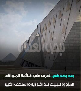 أعلنت هيئة المتحف المصري الكبير، رصد ثلاثة مواقع إلكترونية مُزوَّرة تقوم ببيع وحجز تذاكر دخول وزيارة المتحف المصري الكبير، وذلك في إطار المتابعة الدورية والمستمرة التي تقوم بها إدارة المتحف المصري الكبير لرصد ومتابعة ما يُنشر على شبكة الإنترنت، ولا سيما المواقع والمنصات الإلكترونية التي تدّعي ارتباطها بالمتحف.