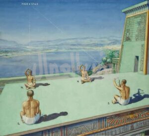 الكاهن الأول يبص من خلال “المرخت” ويراقب النجم وهو بيعدي فوق “رأس” أو “كتف” الكاهن التاني اللي قاعد قصاده. أول ما النجم يلمس النقطة دي، يبقى الساعة كذا بدأت.
