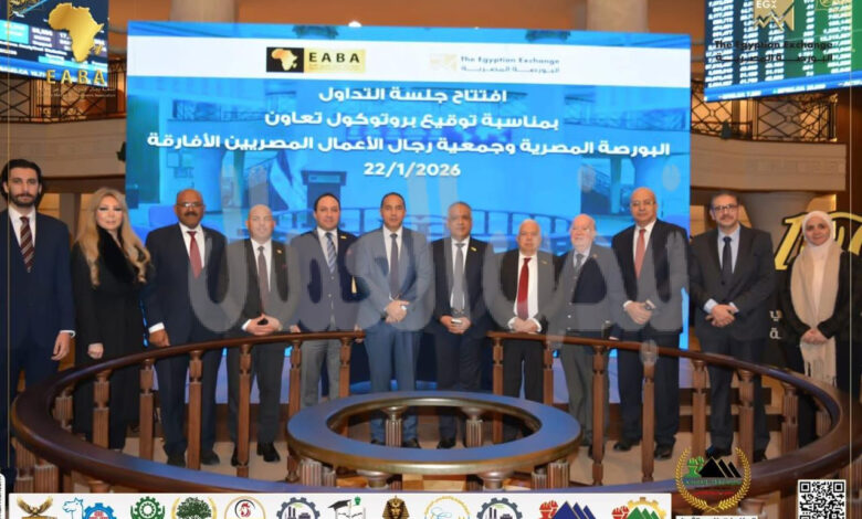 هيثم حسين يشارك في قرع جرس التداول بالبورصة المصرية وبروتوكول تعاون مع رجال الأعمال المصريين الأفارقة