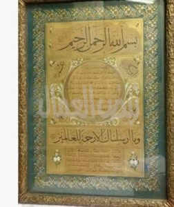 • متحف السويس القومي: يعرض لوحة مطرزة بخيوط السيرما من الحرير والفضة، لسورة الإخلاص ويحيطها في الإطار زخارف نباتية وفى المنتصف كتابة قرآنية “الله نور السماوات والأرض” ويحيطها زخارف هندسية